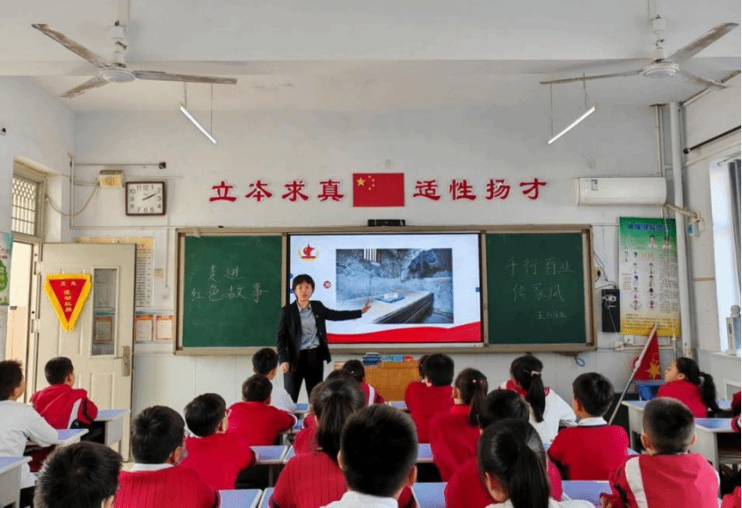 为适应小学生的认知特点,师新荣老师对教学内容进行了针对性设计。她通过讲述三位女红军与徐解秀老人之间“半条被子”的感人故事,以具象化的叙事激发学生情感共鸣,引导学生思考奉献与关爱的价值。课堂上,学生们认真听讲,并在互动环节积极参与,分享个人体会。授课结束后,师新荣老师为学生送上一枚枚小红军钥匙扣作为纪念,以此勉励学生铭记红色故事,传承红色基因。