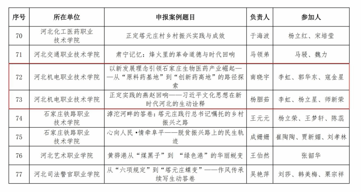 优秀案例的成功入选,既是深入贯彻落实习近平总书记在河北重大实践和视察河北的重要讲话和指示批示精神,更是学校深化“大思政课”改革创新、推动思政教育与社会实践深度融合的重要成果。今后,学校将进一步建设思政案例资源库,把田间地头、社会一线涌现的鲜活实践转化为优质教学素材,让思政课既有理论高度,又有实践温度,真正将思政课讲深讲透、入脑入心。