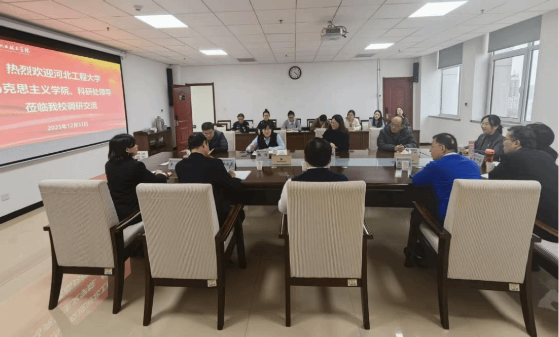为更好地推动思想政治理论课建设与科研工作高质量发展,12月31日,河北工程大学马克思主义学院院长顾瑶、科研处副处长魏玲一行莅临我校指导调研,校长王彦林出席座谈会并讲话,马克思主义学院领导班子成员及教师代表参加活动。