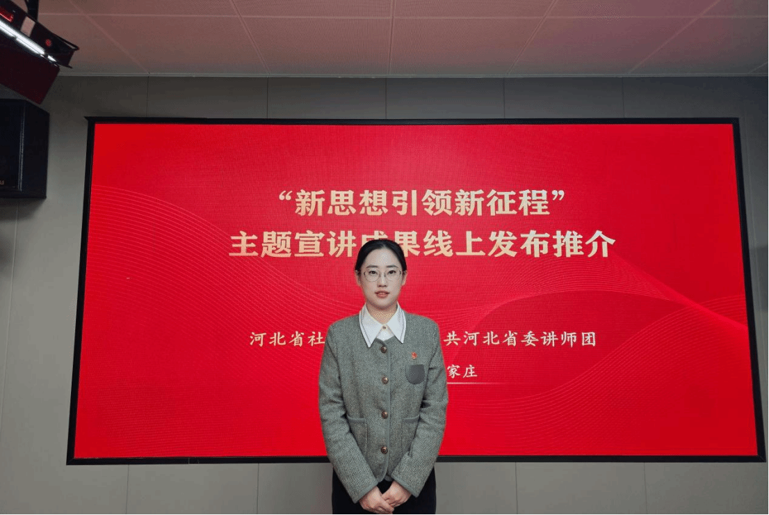 2026年1月27日,由河北省社会科学院、中共河北省委讲师团举办的“新思想引领新征程——学习贯彻习近平总书记重要指示批示精神,奋力谱写中国式现代化建设河北篇章”主题宣讲成果推介发布。邢台市社科联、中共邢台市委讲师团推荐的宣讲品牌“理润邢台·泉城故事汇”特色鲜明、成果突出,成功入选本次推介,马院教师杨胭茹受邀作为宣讲品牌代表现场交流发言。